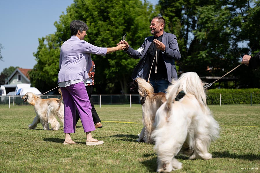 Dies hielt allerdings unsere beiden Richter Dr. Andreas Schemel (AT) und Agnese Della-Rocca (IT) nicht davon ab, die präsentierten Hunde genau zu bewerten. Beide Richter gingen sehr geduldig und einfühlsam mit den Hunden um. Alles in allem war die Stimmung, trotz Hitze, bei allen gut und harmonisch.