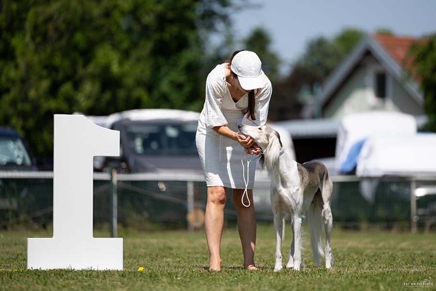 Gabriela von GL Design, die immer sehr großzügig Windhundebekleidung und Accessoires zur Verfügung stellt. Sabrina von Sabrinas Futtergarage. Von ihr erhielten wir all die Snacks und Leckerlies für unsere Hunde. Sowohl beim Rennen als auch der Ausstellung. Danke auch an Zsofia Koppany „Pet On Pictures“, die mir freundlicherweise Fotos von der Ausstellung zur Verfügung gestellt hat.