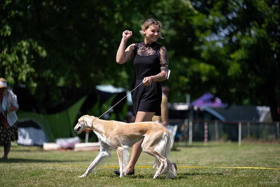 Im Ehrenring wurden dann die Besten der Besten des Tages gekürt und den Titel „ÖKWZR-Klubsieger Best In Show“ konnte die Saluki-Hündin „Alisha Imani Moniet El Nefous“ in Besitz und gezüchtet von Daniela Hammer erlangen – Gratulation! Daniela erhielt einen Gutschein für einen Flug zur Crufts, zur Verfügung gestellt vom ÖKWZR.