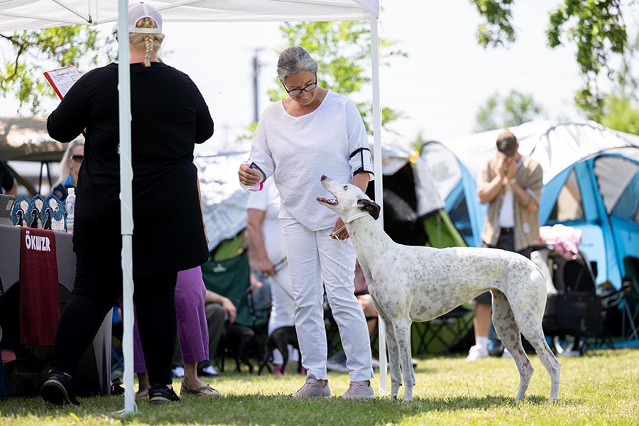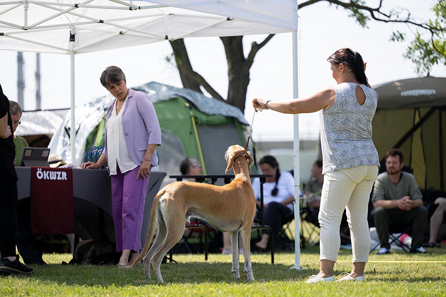 Für Samstag, 14. Juni, wurde das internationale Rennen mit dem Titel „ÖKWZR-Meister“ ausgeschrieben. Dieses Mal wurden Afghanen, Ital. Windspiele und Whippet nach Geschwindigkeit eingeteilt. Diese Variante hatten wir in Österreich für Ital. Windspiele und Whippet bis dahin noch nicht. Die Idee war, dass eventuell mehr „Show-Whippet und -Windspiele“ mit Rennlizenz an einem S&L-Titel interessiert sind und daher für beide Veranstaltungen melden, weil durch diese Gruppierung die Chance erhöht wäre, Anwartschaften (CCLA) zu erlangen und durch die Gruppierungen eben der erwähnte S&L-Titel.
