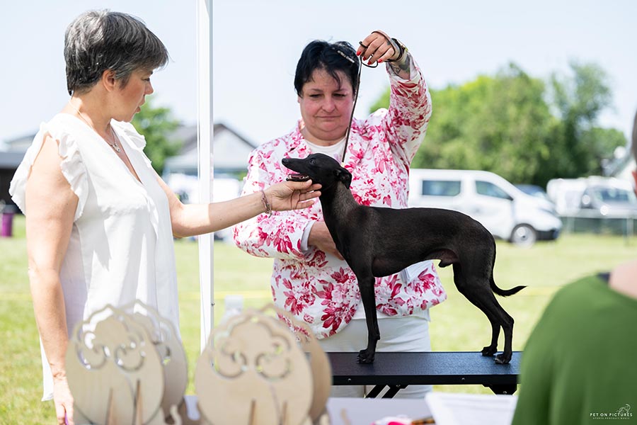 Dies hielt allerdings unsere beiden Richter Dr. Andreas Schemel (AT) und Agnese Della-Rocca (IT) nicht davon ab, die präsentierten Hunde genau zu bewerten. Beide Richter gingen sehr geduldig und einfühlsam mit den Hunden um. Alles in allem war die Stimmung, trotz Hitze, bei allen gut und harmonisch.